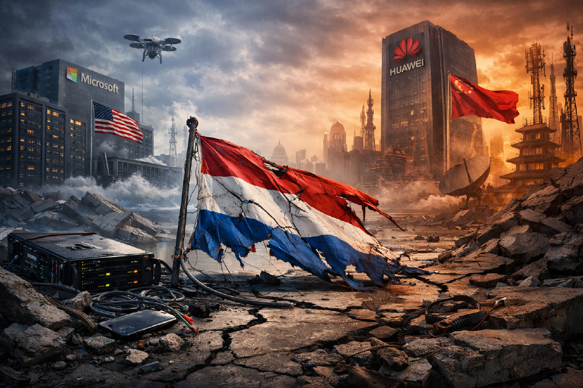 - 2021 — Telecommunications Huawei ban. The Dutch government pressures providers to remove Huawei from 5G cores. Simultaneously, Huawei equipment continues to be installed in Dutch hospitals, care facilities, justice institutions, and datacenters. Policy applied to one sector and ignored everywhere else.